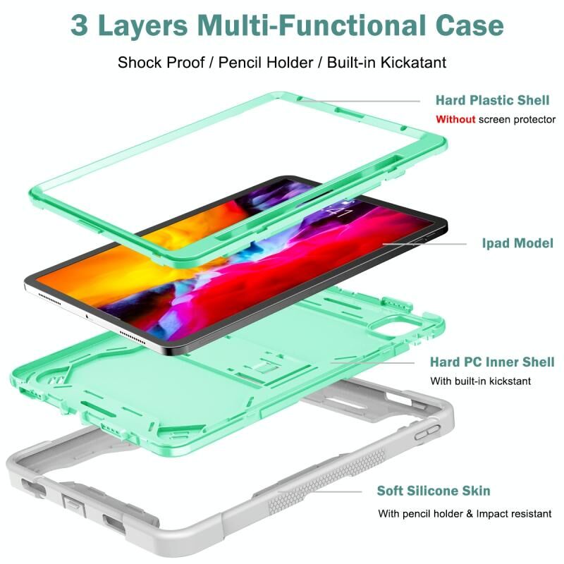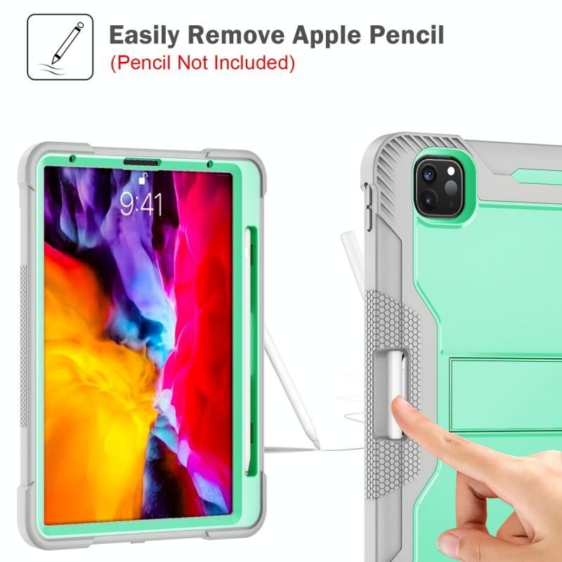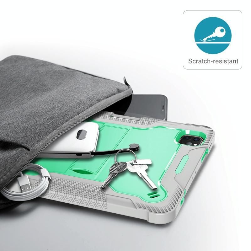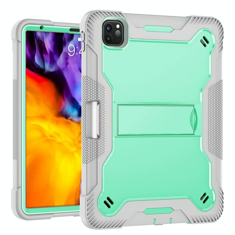 For iPad Pro 11 inch 2020 Silicone PC Shockproof Tablet Case with Holder (Gray + Green)