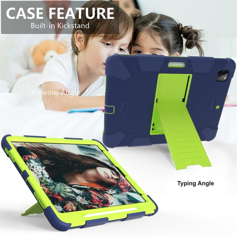 Θήκη Προστασίας Tablet Διχρωμική Σιλικόνης Αντικραδασμική για iPad Pro 12.9 (2018) / (2020) με Στήριξη (Μαύρο+Μπλε)