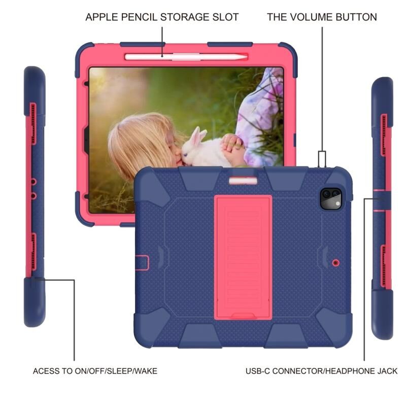 Θήκη Προστασίας Tablet Διχρωμική Σιλικόνης Αντικραδασμική για iPad Pro 12.9 (2018) / (2020) με Στήριξη (Μαύρο+Μπλε)