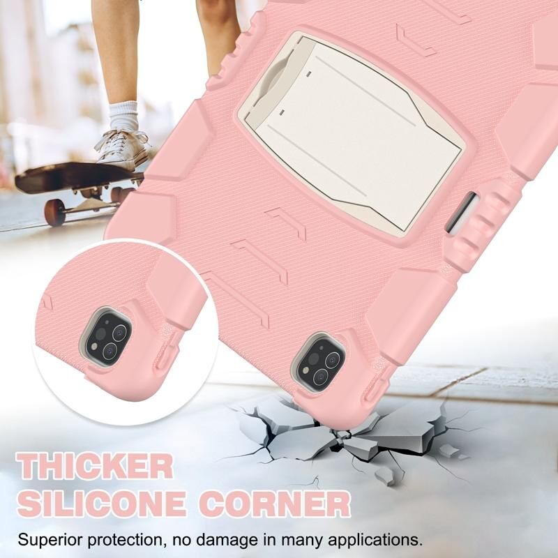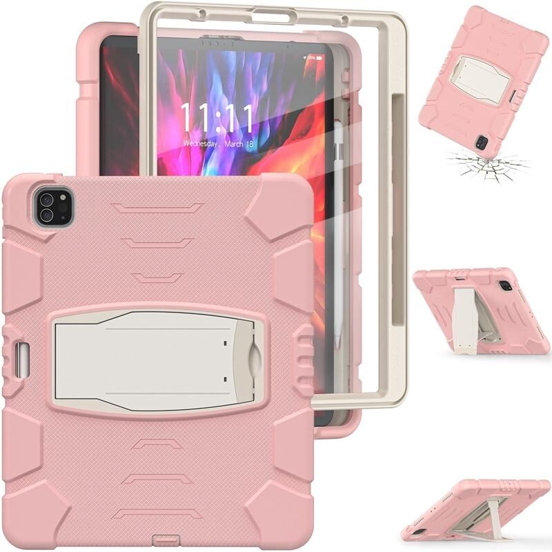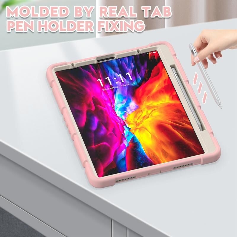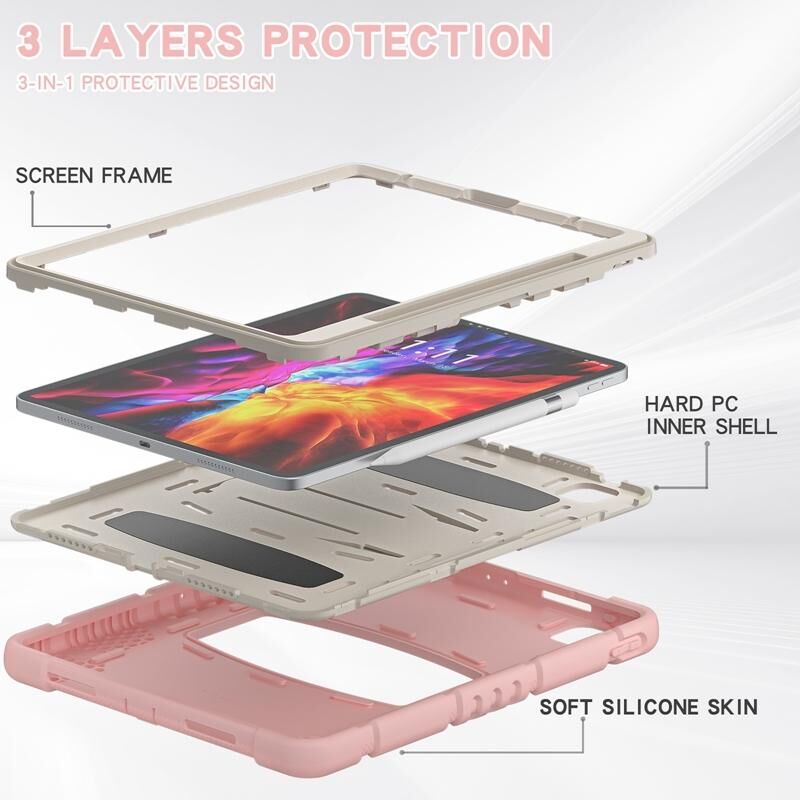 For iPad Pro 12.9 2020 3-Layer Protection Screen Frame + PC + Silicone Shockproof Combination Tablet Case with Holder(Cherry Blossoms Pink)