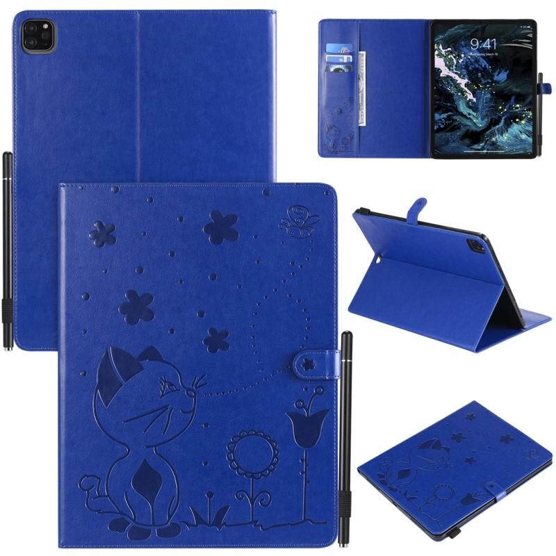 Για iPad Pro 12,9 (2020) & (2018) Θήκη Ταμπλέτας από Δέρμα με Οριζόντιο Άνοιγμα, με ανάγλυφο σχέδιο Γάτας και Βελόνες, με Θήκη & Θήκες Καρτών & Πορτοφόλι & Θήκη Στυλό (Πράσινο)