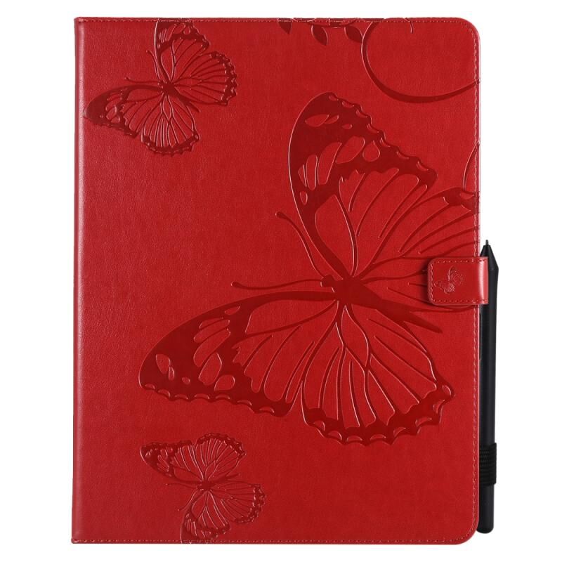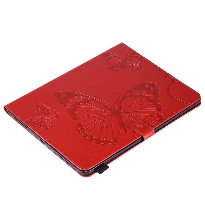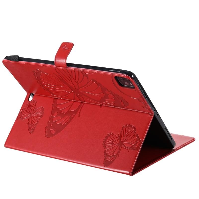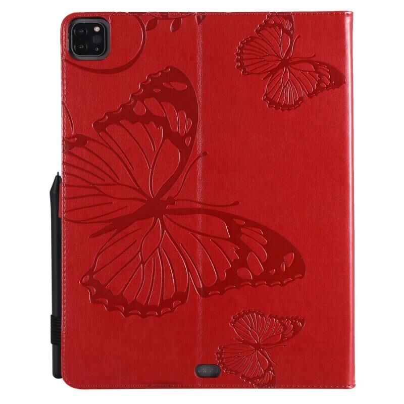 For iPad Pro 12.9 (2020) Pressed Printing Butterfly Pattern Horizontal Flip Leather Tablet Case with Holder & Card Slots & Wallet(Red)
