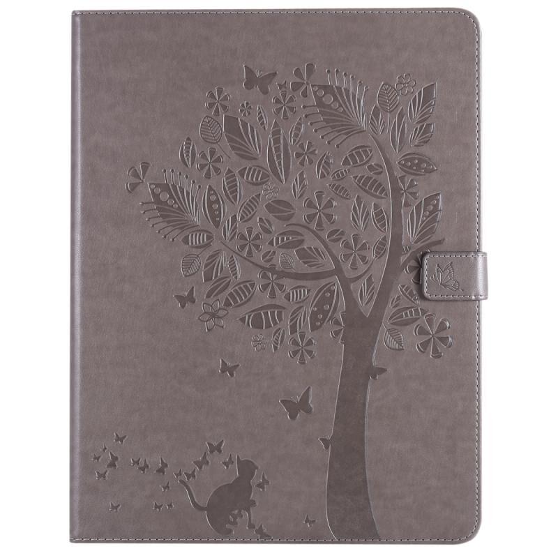 Θήκη tablet από δέρμα με οριζόντιο άνοιγμα για iPad Pro 12,9 (2020) με σχέδιο γατας και δέντρου, με εκτύπωση, βάση στήριξης, θήκες για κάρτες και πορτοφόλι (Χρυσό ροζ)