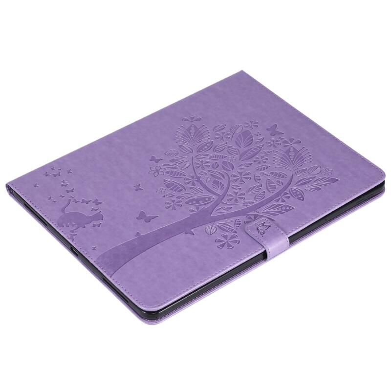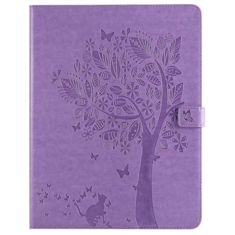Θήκη tablet από δέρμα με οριζόντιο άνοιγμα για iPad Pro 12.9 (2020) με σχέδιο γάτας και δέντρου, εκτύπωση υπό πίεση, με βάση στήριξης & θήκες για κάρτες & πορτοφόλι (Πράσινο)