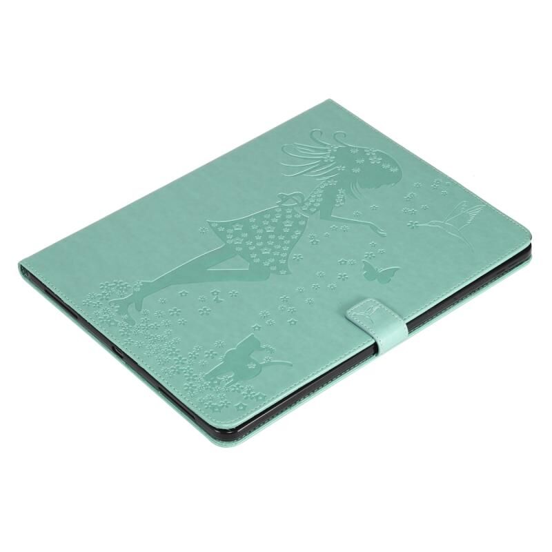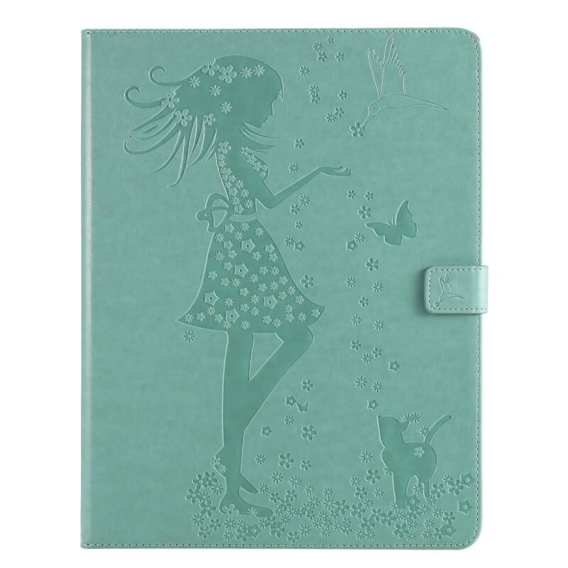 Θήκη ταμπλέτας από δέρμα με οριζόντιο άνοιγμα για iPad Pro 12.9 (2020) με σχέδιο γυναίκας και γάτας, με εκτύπωση, βάση στήριξης, θήκες για κάρτες και πορτοφόλι (Πράσινο)