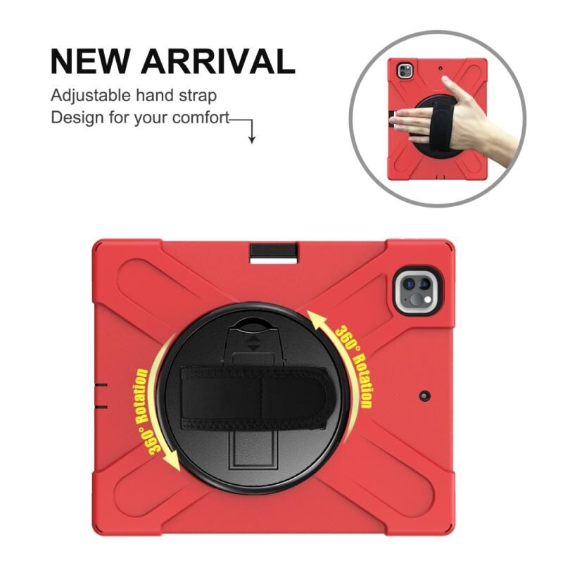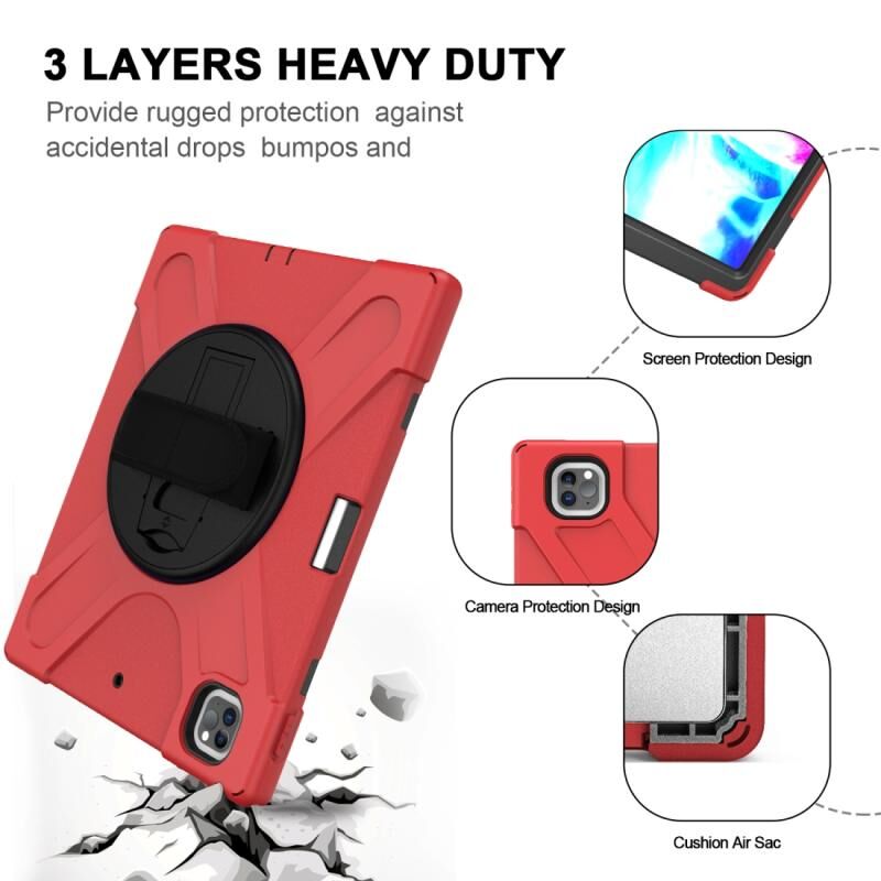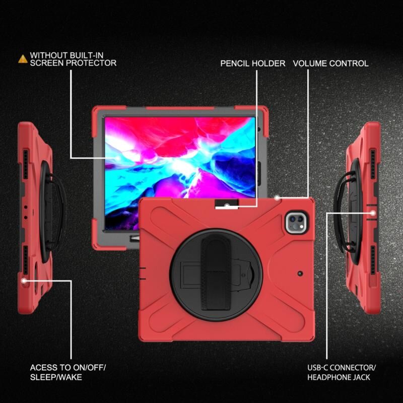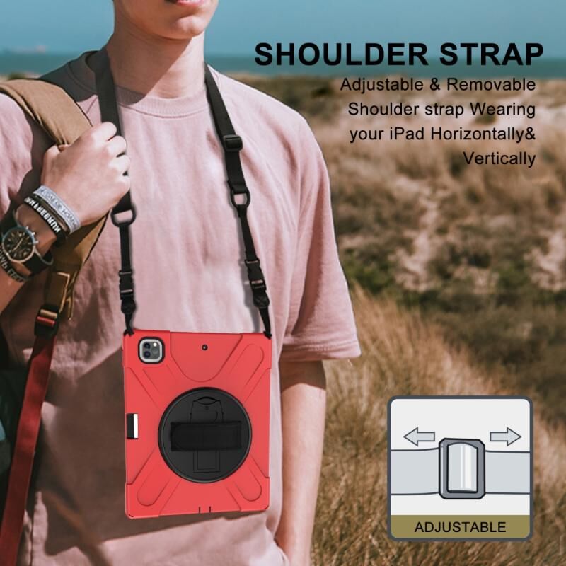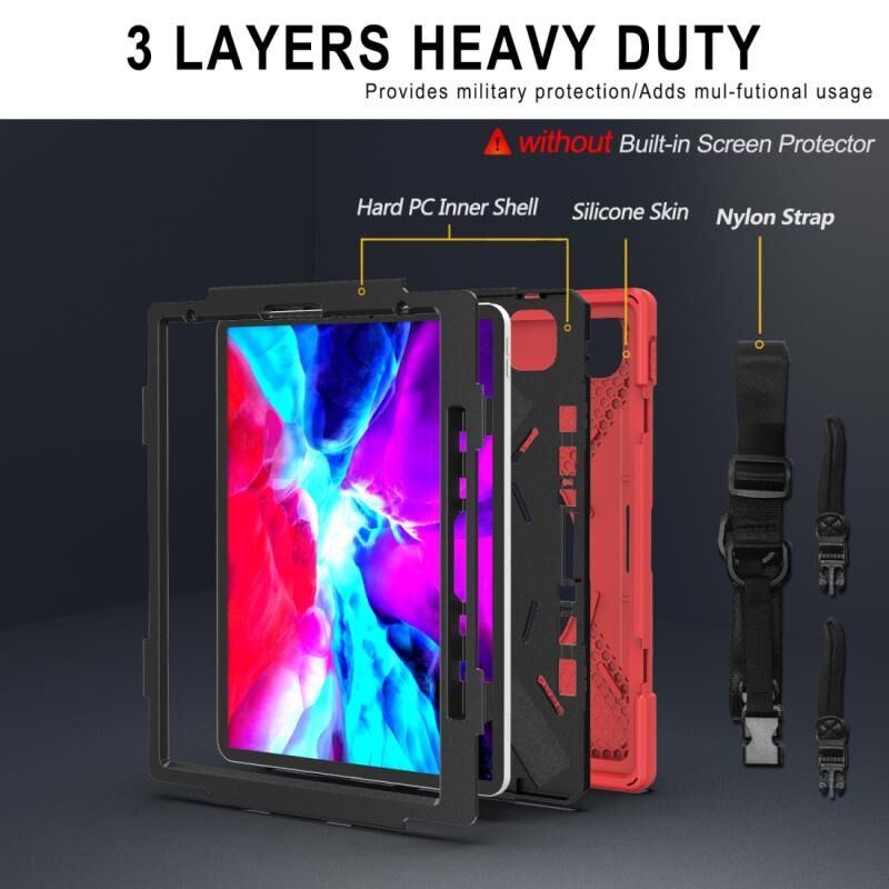 Για iPad Pro 12.9 2021 / 2020 ανθεκτική θήκη ταμπλέτας από σιλικόνη + PC με βάση στήριξης & λουρί ώμου & λουρί χειρός & υποδοχή για στυλό (Κόκκινο)