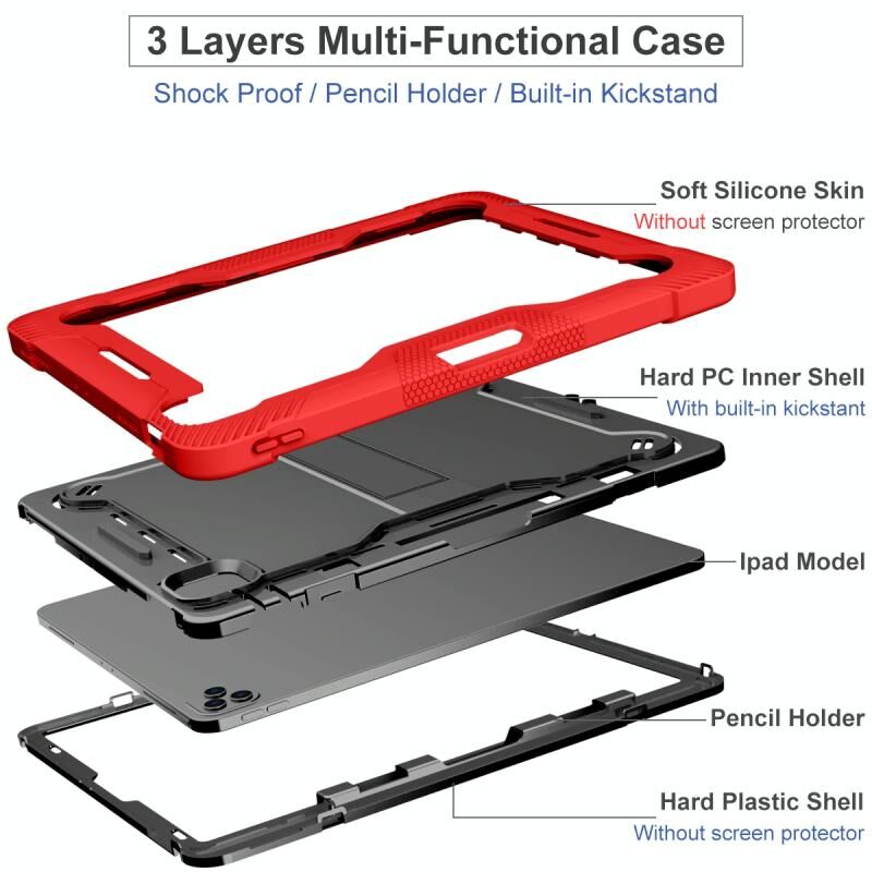 For iPad Pro 12.9 2022 / 2021 / 2020 / 2018 Silicone + PC Shockproof Tablet Case(Red+Black)