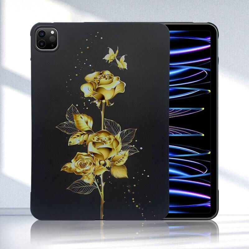 For iPad Pro 12.9 2022 / 2021 / 2020 Color Painting Pattern Smart Tablet TPU Case(Golden Rose)