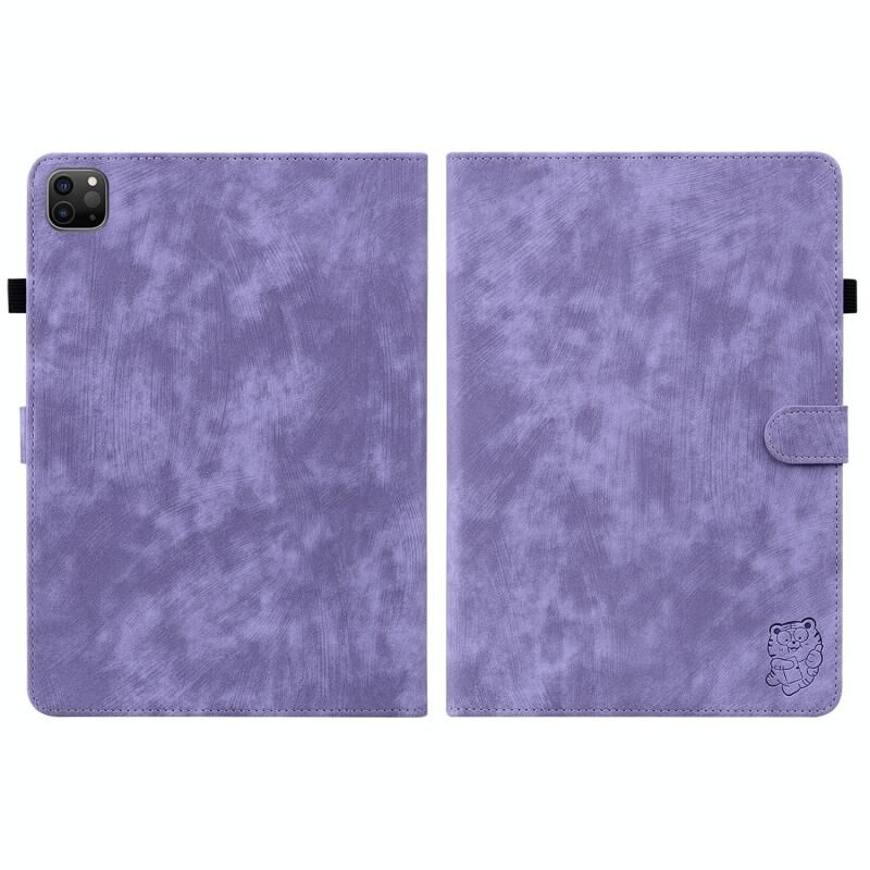 For iPad Pro 12.9 2022 / 2021 / 2020 Tiger Pattern PU Tablet Case with Sleep / Wake-up Function(Purple)