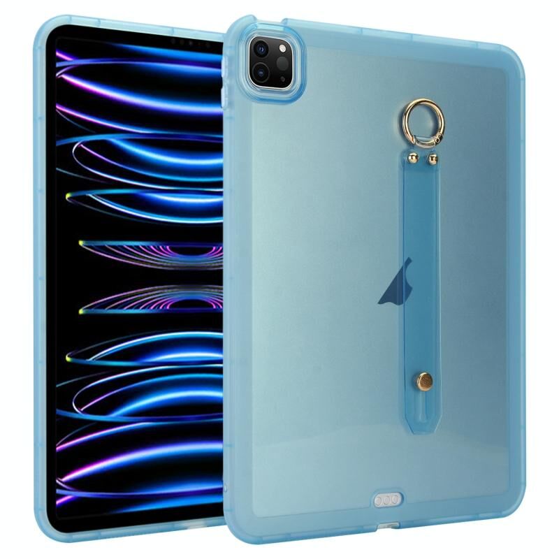 For iPad Pro 12.9 2022 / 2021 / 2020 Wristband Holder PC Hybrid TPU Soft Tablet Case(Blue)