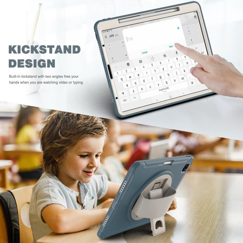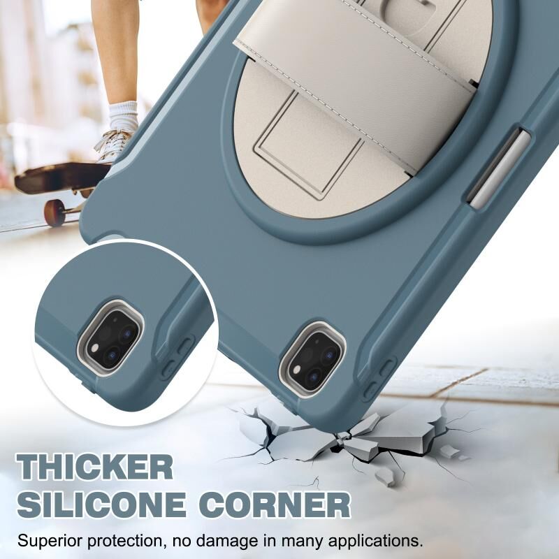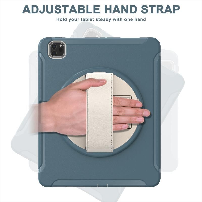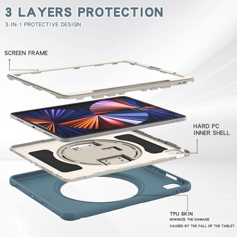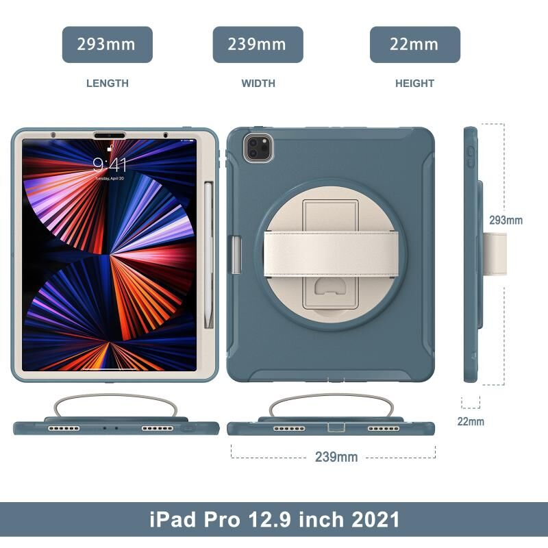 For iPad Pro 12.9 2022 / 2021 360 Degree Rotation PC + TPU Protective Tablet Case with Holder & Hand-strap(Cornflower Blue)