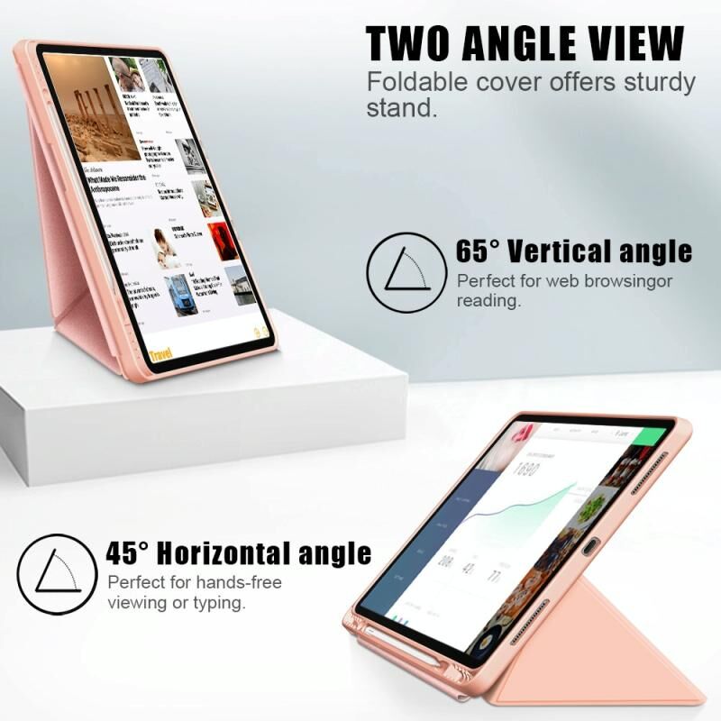 5. Horizontal stand function, supports a unique designed cover which can be folded back to be a stand holder to make watching videos more convenient.