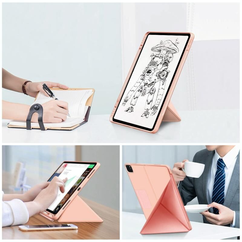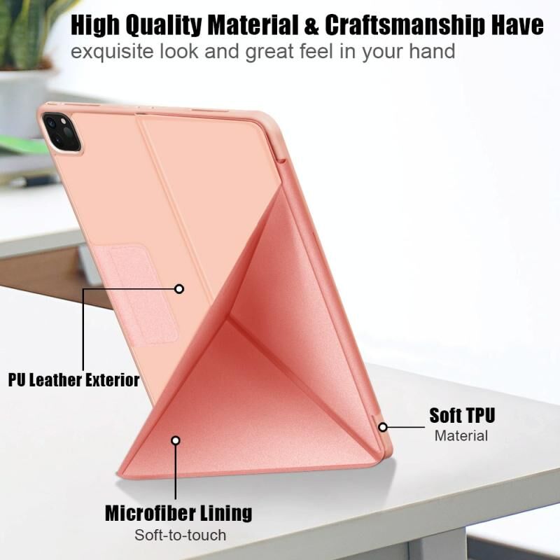 For iPad Pro 12.9 2022 / 2021 Multi-folding Horizontal Flip PU Leather Shockproof Tablet Case with Holder & Sleep / Wake-up Function(Rose Gold)