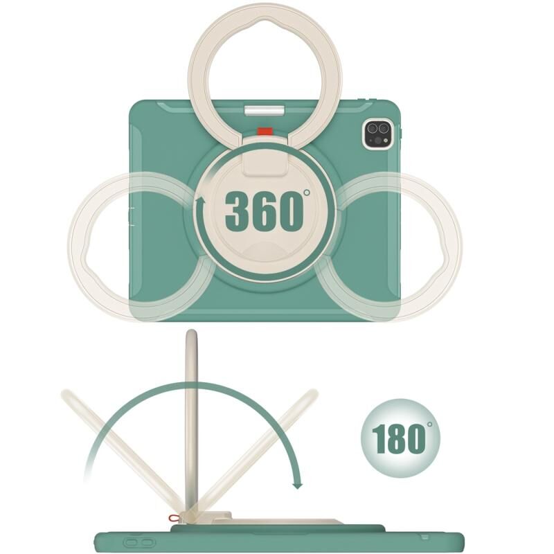 For iPad Pro 12.9 2022 / 2021 Shockproof TPU + PC Protective Tablet Case with 360 Degree Rotation Foldable Handle Grip Holder & Pen Slot(Emmerald Green)