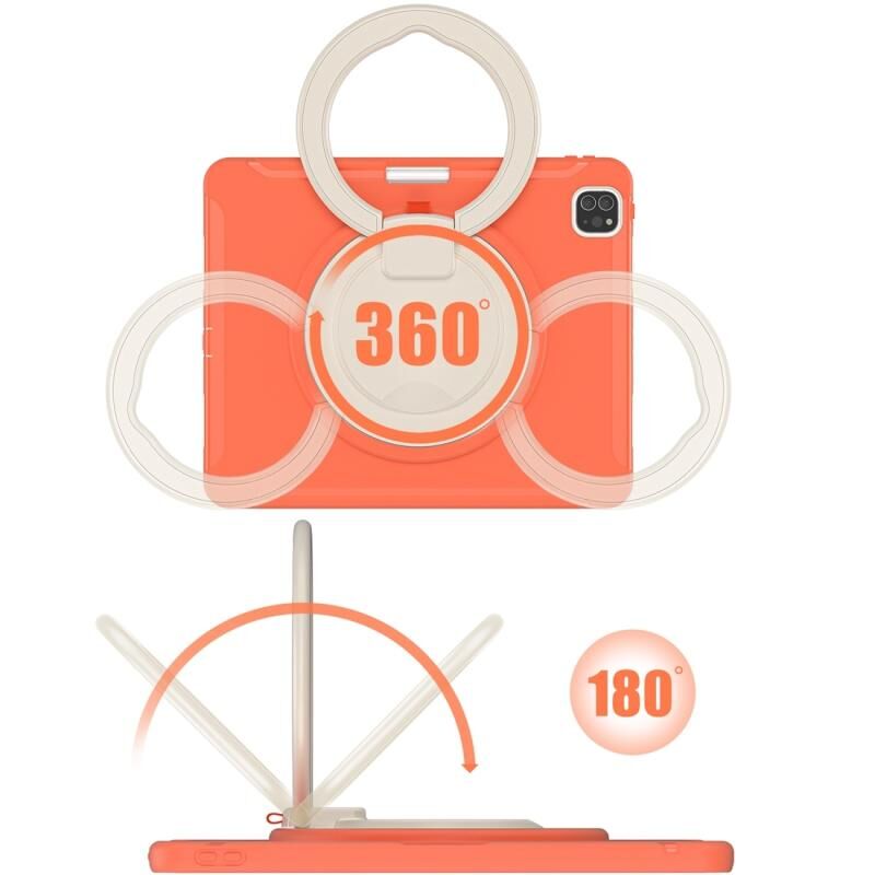 For iPad Pro 12.9 2022 / 2021 Shockproof TPU + PC Protective Tablet Case with 360 Degree Rotation Foldable Handle Grip Holder & Pen Slot(Living Coral)