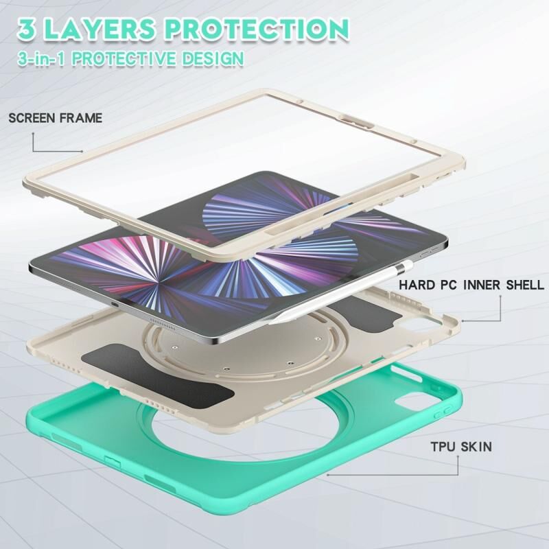 For iPad Pro 12.9 2022 / 2021 Shockproof TPU + PC Protective Tablet Case with 360 Degree Rotation Foldable Handle Grip Holder & Pen Slot(Mint Green)