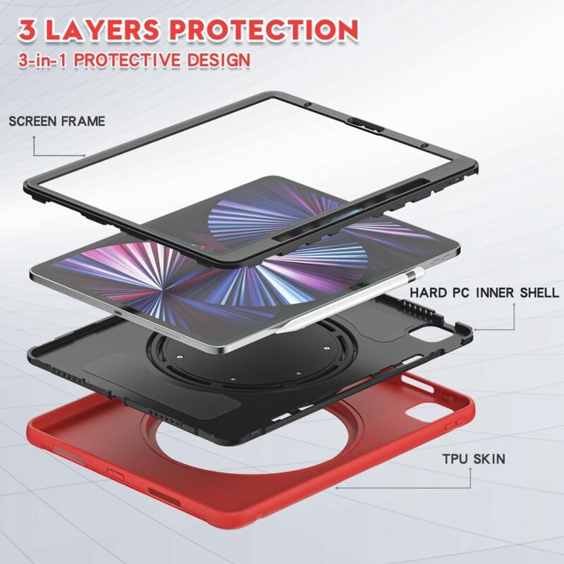 For iPad Pro 12.9 2022 / 2021 Shockproof TPU + PC Protective Tablet Case with 360 Degree Rotation Foldable Handle Grip Holder & Pen Slot(Red)