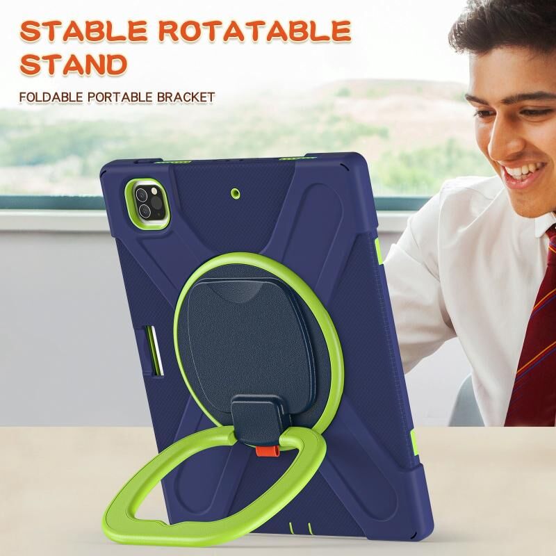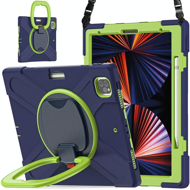 Θήκη Προστασίας Tablet από Σιλικόνη + PC για iPad Pro 12.9 2022 / 2021 με Στήριξη & Λουρί Ώμου (Navy Blue + Μπλε)