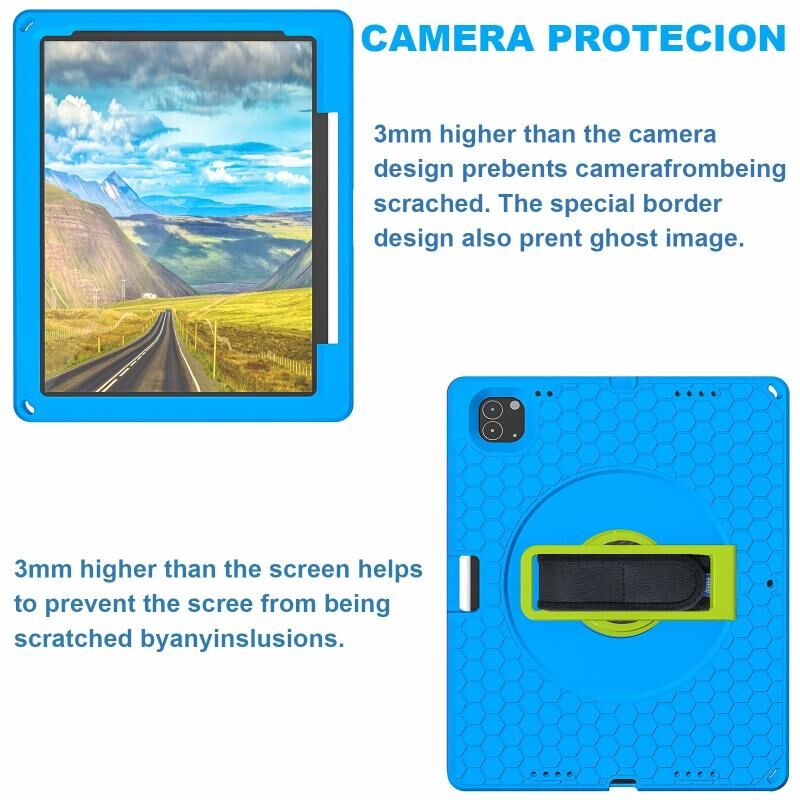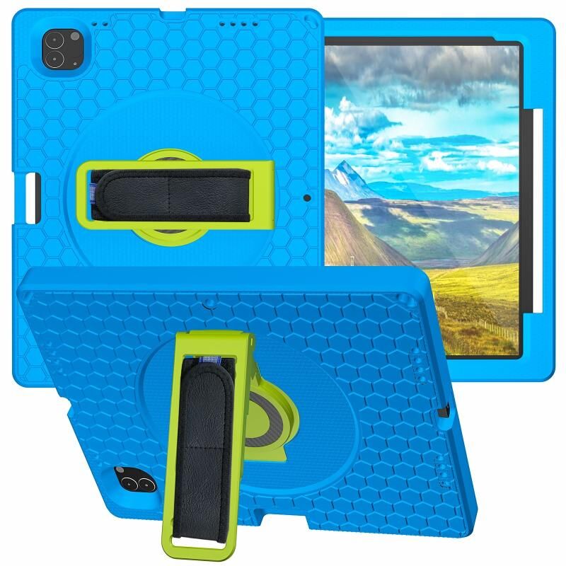 Για iPad Pro 12,9 ιντσών 2019 / 2021 / 2022 360 περιστροφή Stand EVA σκληρό PC Tablet υπόθεση με λουράκι (μπλε + πράσινο)
