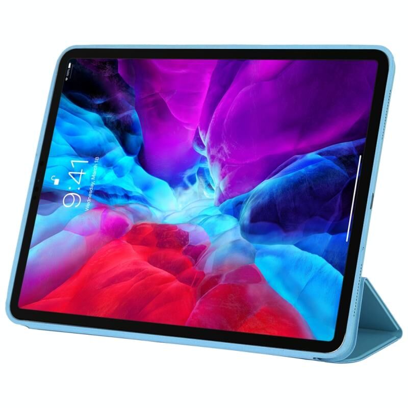 For iPad Pro 12.9 inch (2020/2021) 3-fold Horizontal Flip Smart Leather Tablet Case with Sleep / Wake-up Function & Holder(Blue)
