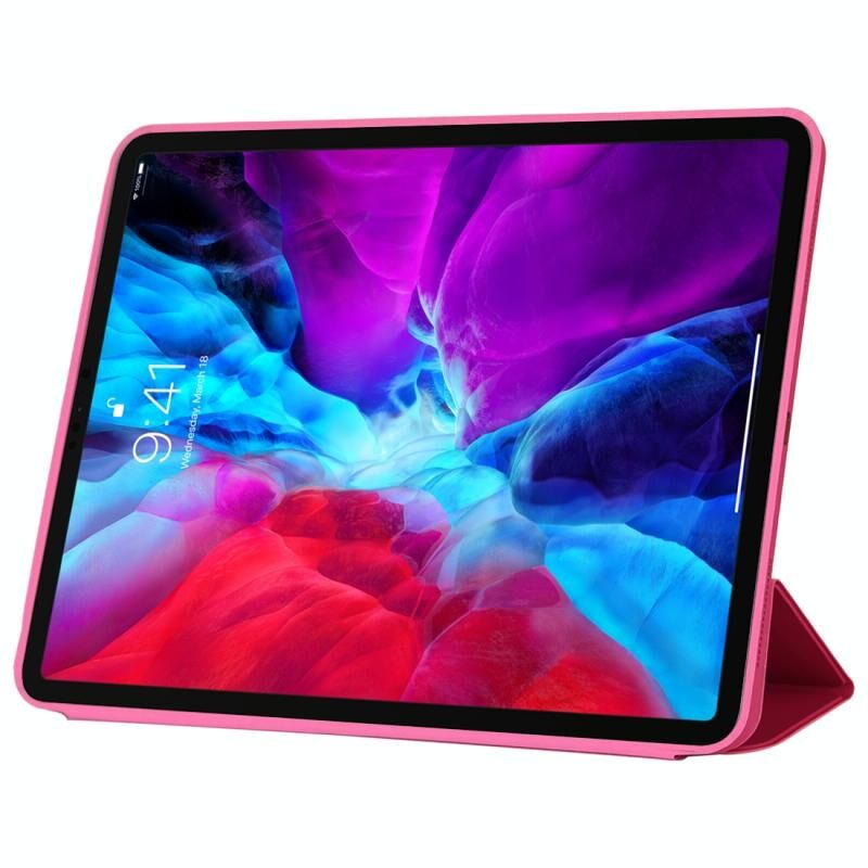 For iPad Pro 12.9 inch (2020/2021) 3-fold Horizontal Flip Smart Leather Tablet Case with Sleep / Wake-up Function & Holder(Rose Red)