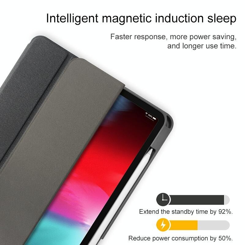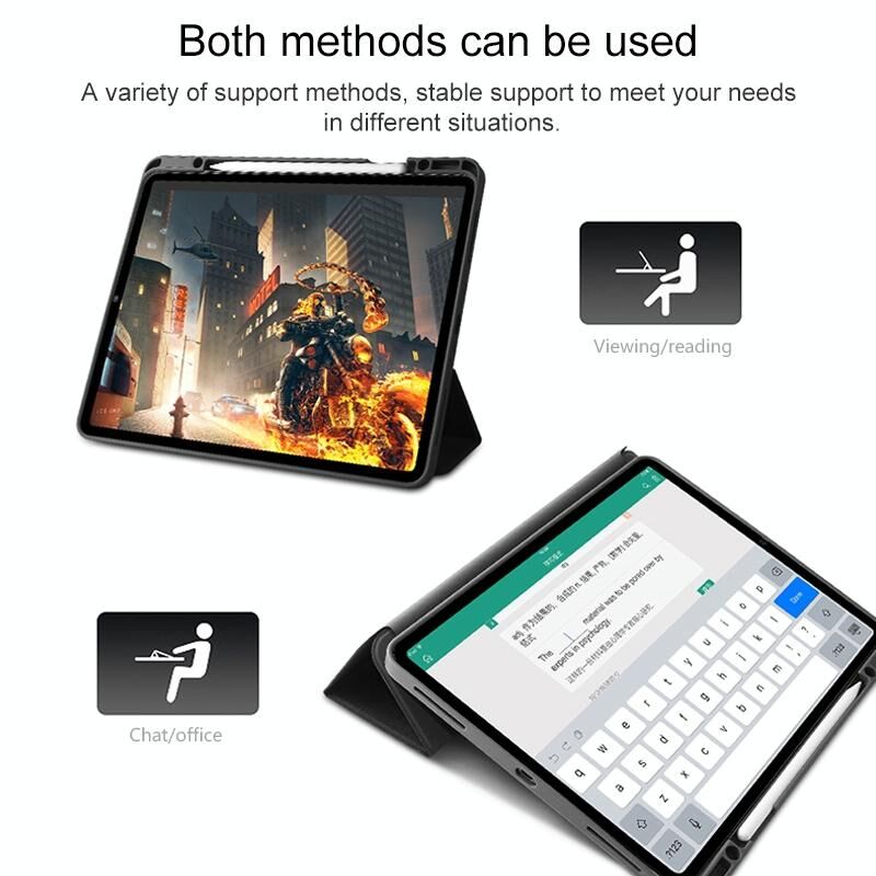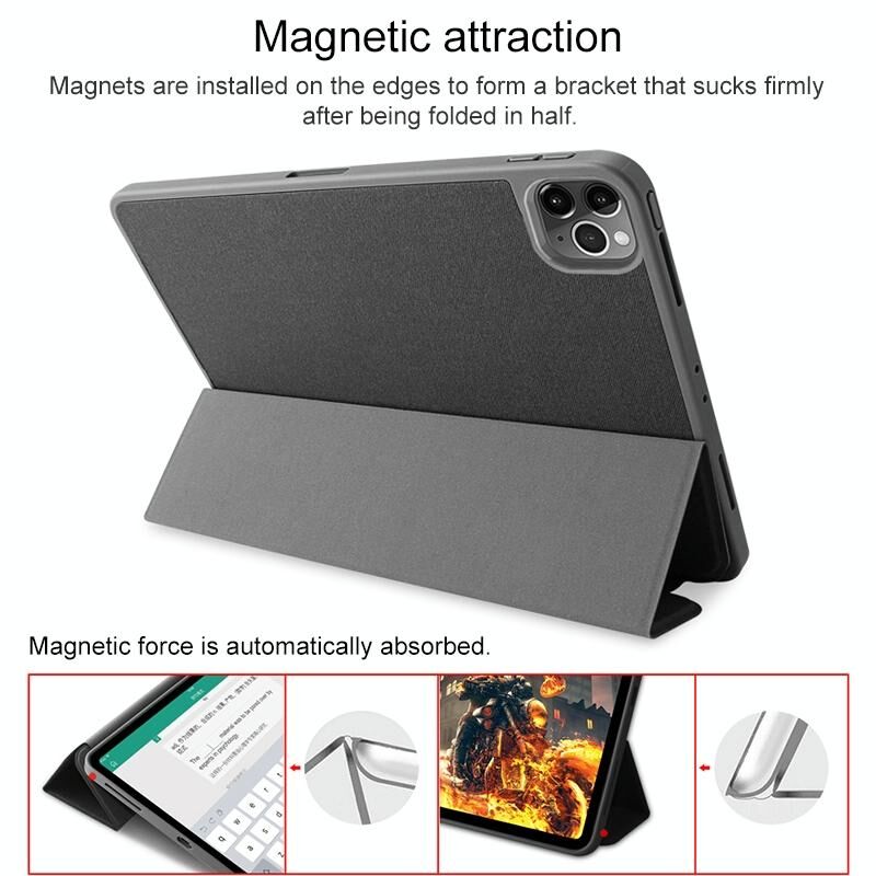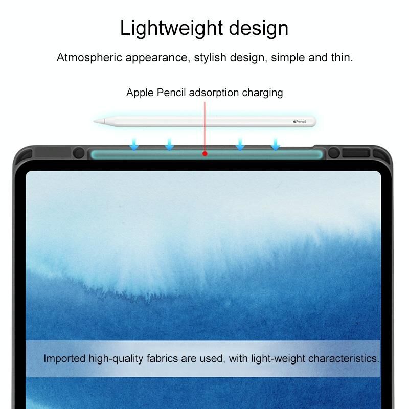 For iPad Pro 12.9 inch (2020) Mutural YASHI Series TPU + PU Cloth Pattern Texture Horizontal Flip Leather Tablet Case with Three-folding Holder & Pen Slot & Wake-up / Sleep Function(Black)