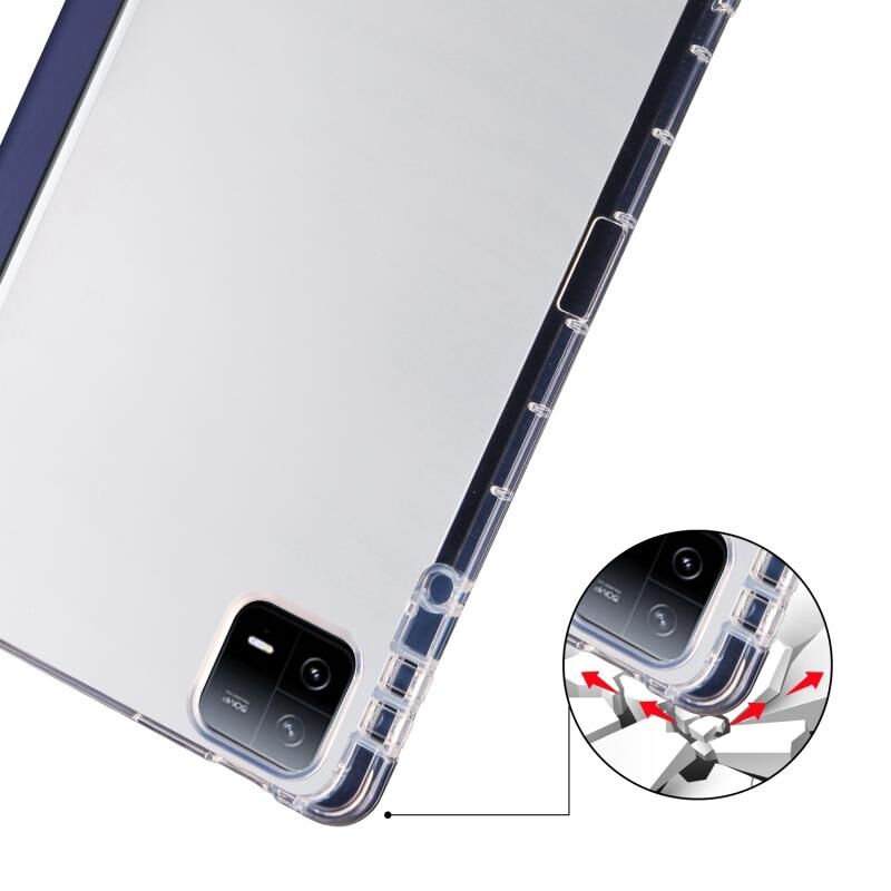 For iPad Pro 13 2024 3-fold Clear TPU Smart Leather Tablet Case with Pen Slot(Dark Blue)