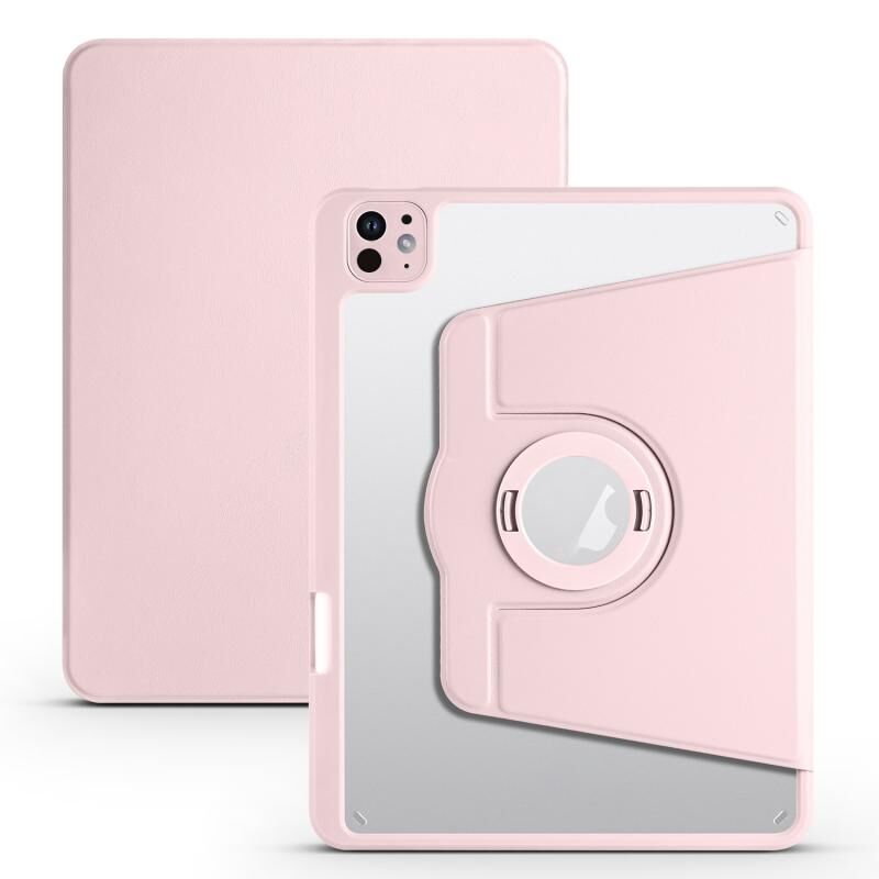 For iPad Pro 13 2024 Acrylic 360 Rotation Detachable Leather Tablet Case(Sand Pink)