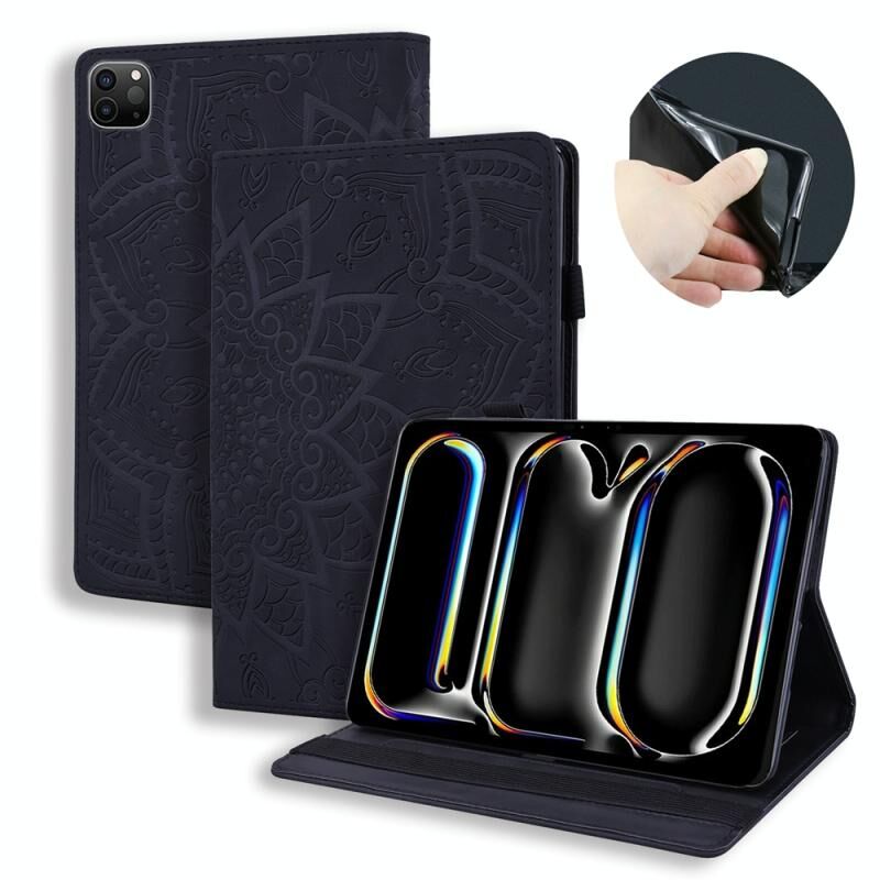 For iPad Pro 13 2024 Calf Texture Embossed Leather Tablet Case(Black)