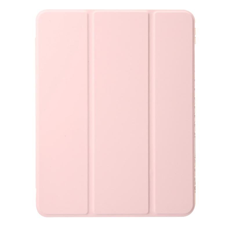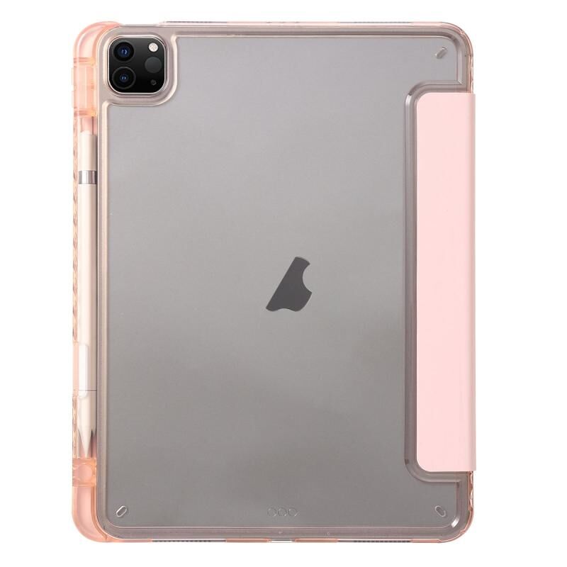 Για iPad Pro 13 2024 Σαφής ακρυλική θήκη για tablet με δέρμα 3 πτυχών (ροζ)