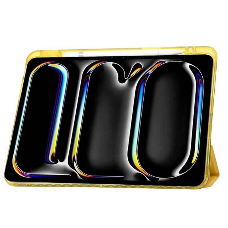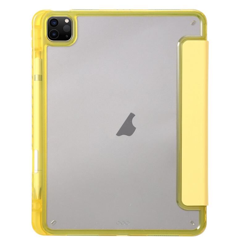 Για iPad Pro 13 2024 Σαφής ακρυλική θήκη για tablet με δέρμα 3 πτυχών (κίτρινο)