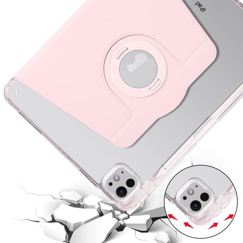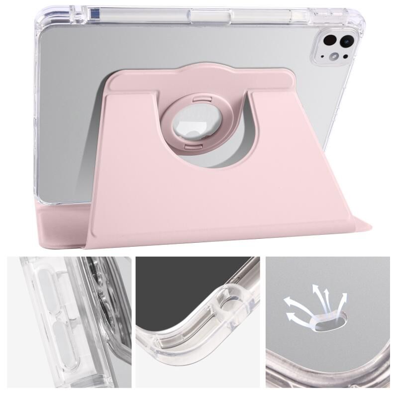 For iPad Pro 13 2024 Clear Acrylic 360 Rotation Detachable Leather Tablet Case(Pink)