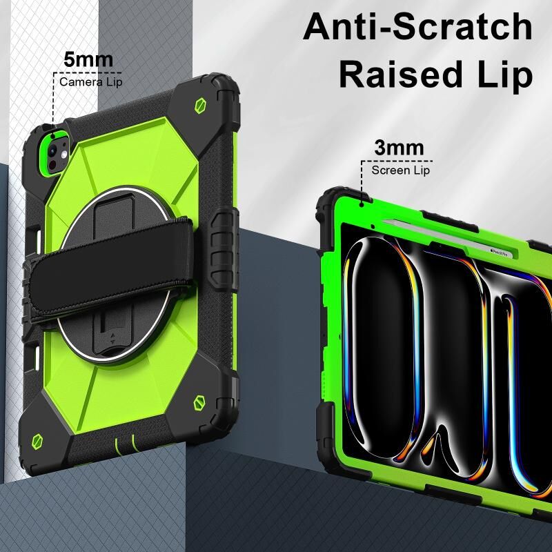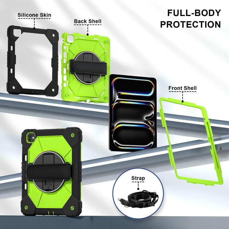 For iPad Pro 13 2024 Contrast Color Robot Silicone Hybrid PC Tablet Case(Black Yellow Green)