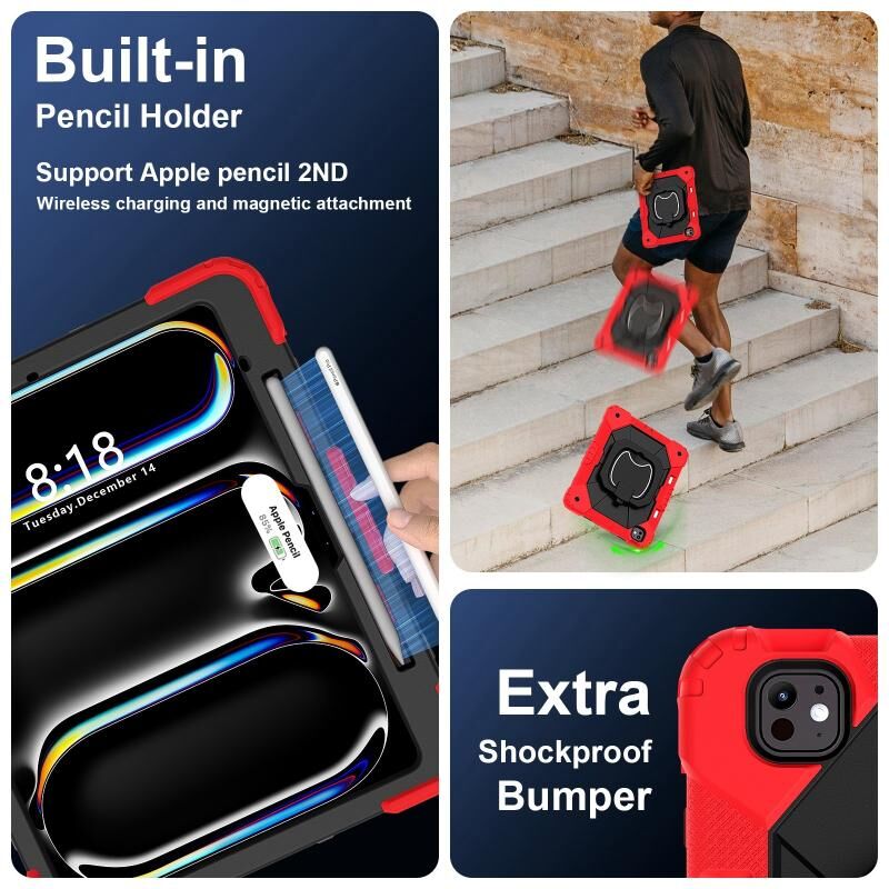 Για iPad Pro 13 2024 Αντίθεση Χρώμα ρομπότ σιλικόνης σιλικόνης υβριδική θήκη tablet PC (κόκκινο μαύρο)