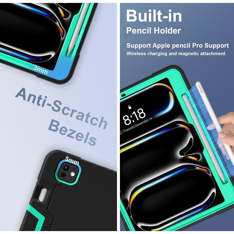 For iPad Pro 13 2024 Contrast Color Silicone Acrylic PC Tablet Case with Holder(Black Mint Green)