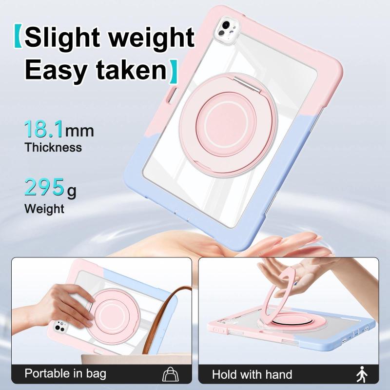 For iPad Pro 13 2024 Crystal Armor PC Hybrid TPU Tablet Case with Pen Slot(Blue Pink)