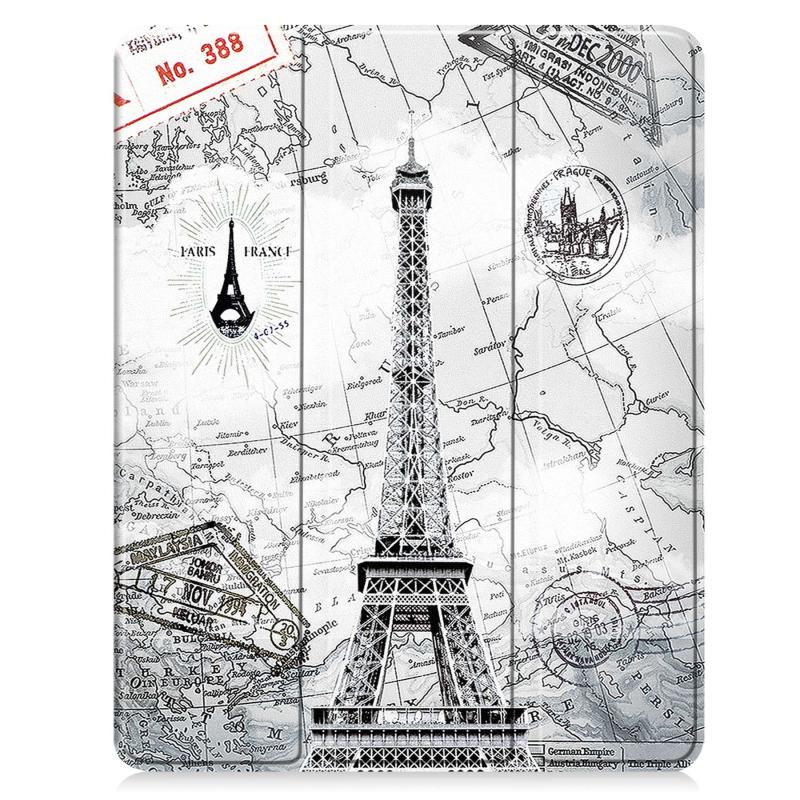 For iPad Pro 13 2024 Custer Painted 3-Fold Holder Smart Leather Tablet Case with Pen Tray(Eiffel Tower)