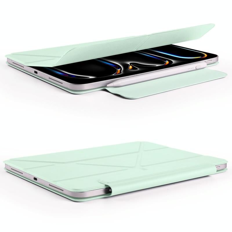 For iPad Pro 13 2024 Fixed Buckle Magnetic Deformation Leather Tablet Case(Baby Green)