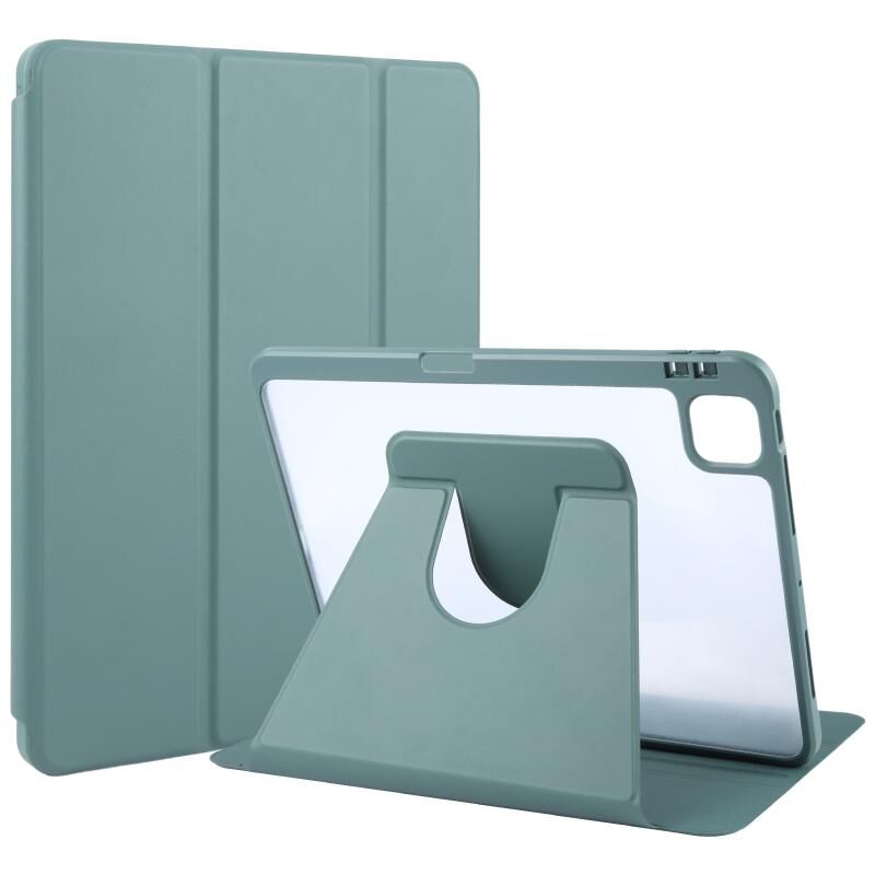 For iPad Pro 13 2024 GEBEI Acrylic TPU 3-folding Rotating Smart Tablet Leather Case withh Pen Slot(Dark Green) (GEBEI)
