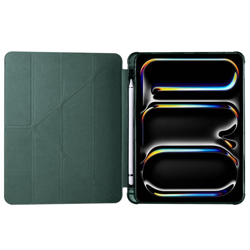 Για το iPad Pro 13 2024 Πολυπτυσσόμενη θήκη για έξυπνο tablet από δέρμα TPU με υποδοχή για στυλό (Πράσινο πεύκο)