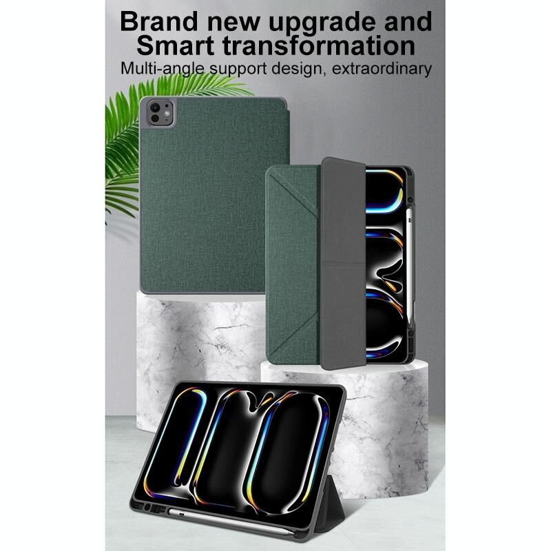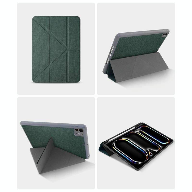 For iPad Pro 13 2024 Mutural Multi-fold Smart Leather Tablet Case(Green) (Mutural)