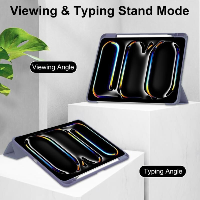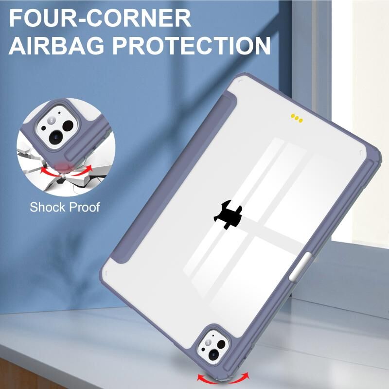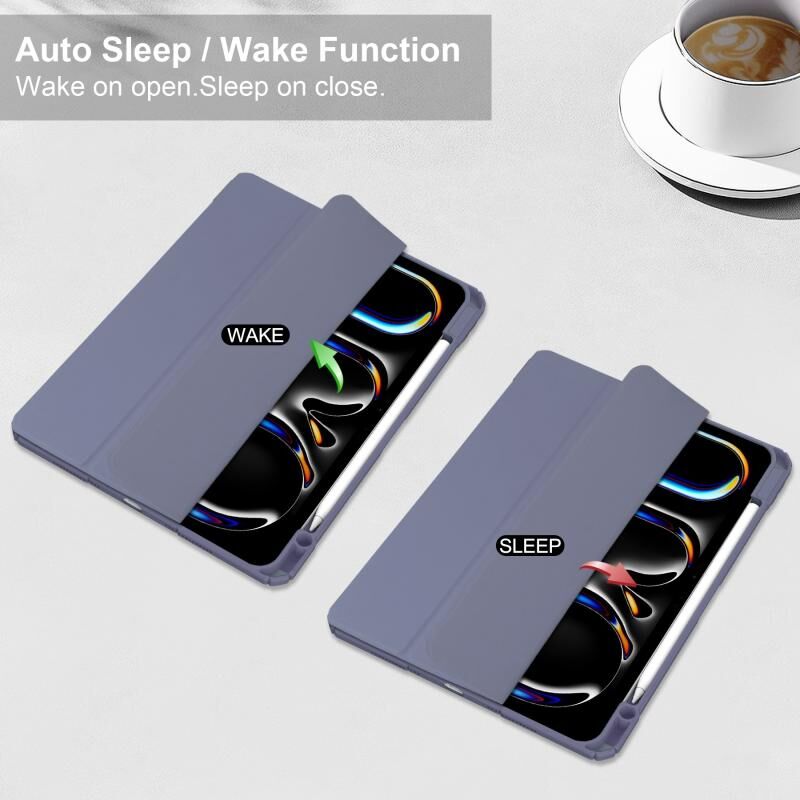 For iPad Pro 13 2024 Pure Color 3-fold Clear TPU Smart Leather Tablet Case(Lavender)