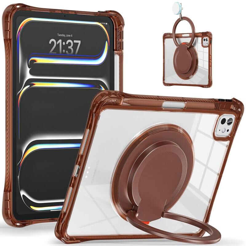 For iPad Pro 13 2024 Rotation Ring Handle TPU Hybrid Clear PC Tablet Case(Chocolate)