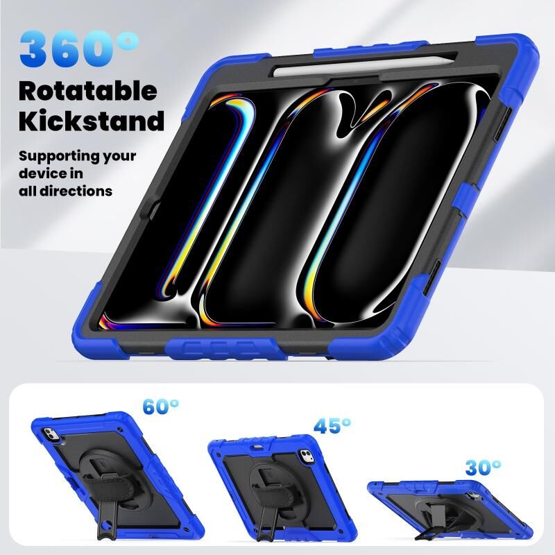 Για iPad Pro 13 2024 Υβριδική θήκη tablet PC σιλικόνης με λουράκι ώμου (μαύρο + σκούρο μπλε)