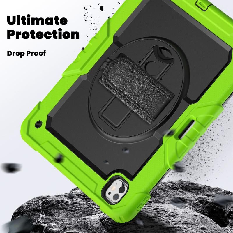 For iPad Pro 13 2024 Silicone Hybrid PC Tablet Case with Shoulder Strap(Black + Yellow Green)