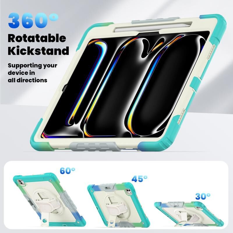 For iPad Pro 13 2024 Silicone Hybrid PC Tablet Case with Shoulder Strap(Camouflage Light Blue)