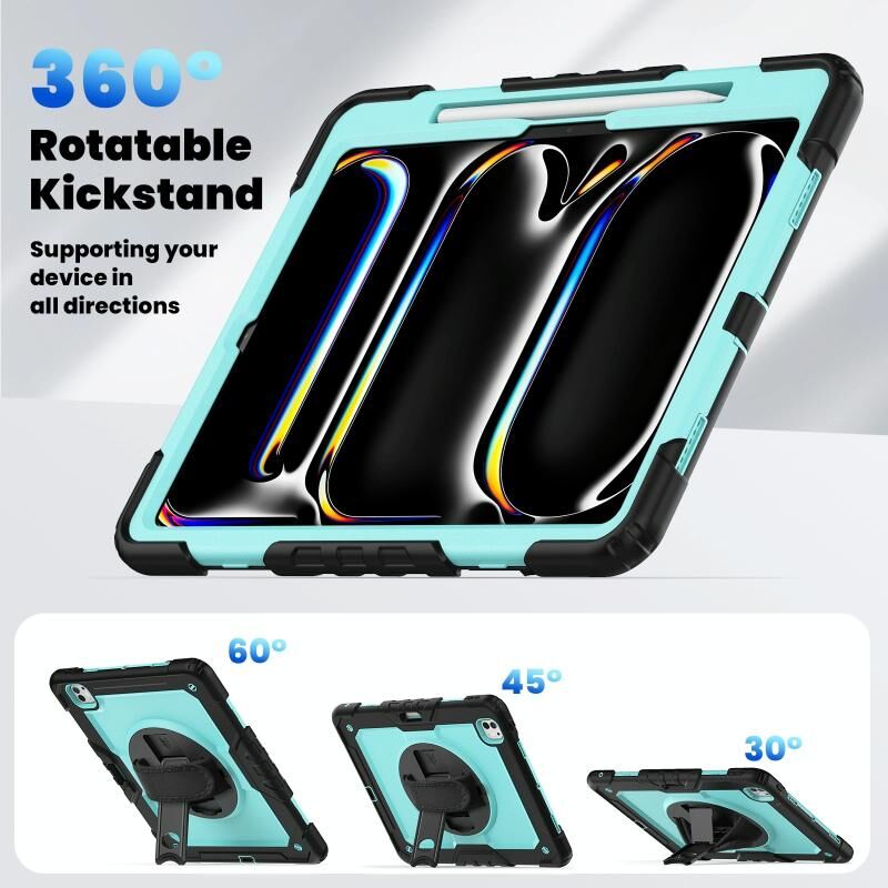 Για iPad Pro 13 2024 Υβριδική θήκη tablet PC σιλικόνης με λουράκι ώμου (γαλάζιο + μαύρο)