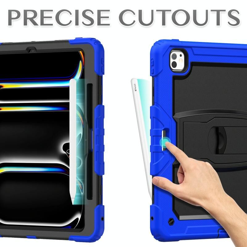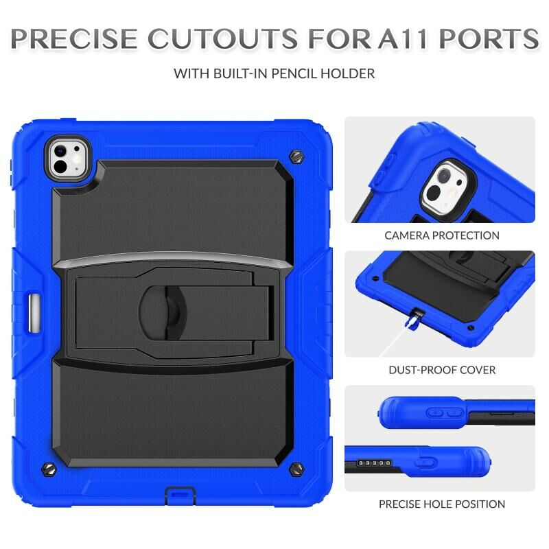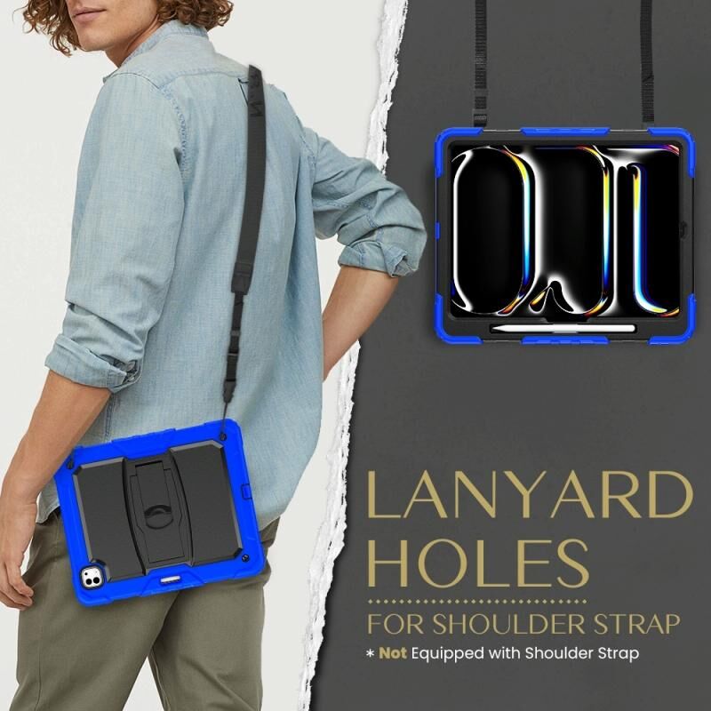 For iPad Pro 13 2024 Silicone Hydric PC Tablet Case with Shoulder Strap & Holder(Blue)