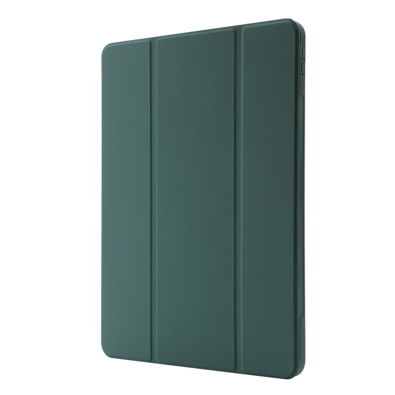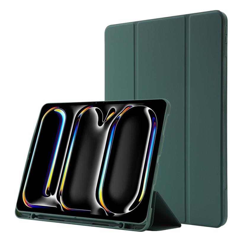 For iPad Pro 13 2024 Skin Feel Tri-fold Leather Tablet Case with Pen Slot(Dark Green)