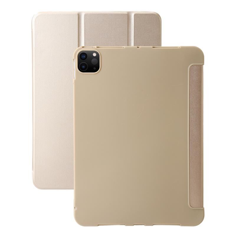 For iPad Pro 13 2024 Three-fold Holder Flip Tablet Leather Case(Gold)